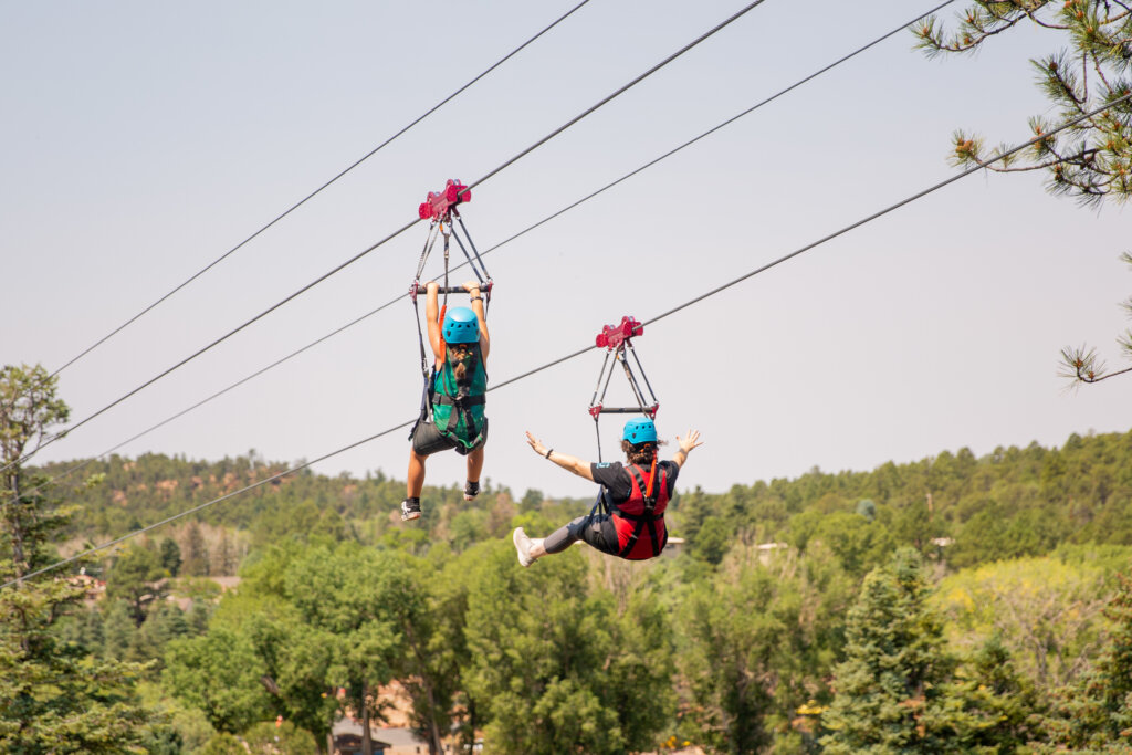Here we are! Our biggest and baddest and best bang for your buck! THE HIGH FIVE! The High Five is a 5 tower zipline that sprawls across the eastern side of our wilderness. With the base camp located just outside of our front gate, your day starts off with meeting our lovely guides, getting harnessed up, and loading up into a military truck and heading up the mountain! Once you’re up, our guides send and receive you line to line and back-and-forth across the mountain! There’s a brief and beautiful hike in the middle with snacks (we hear they have watermelon! 👀👀👀) before you launch off again at up to 40 miles an hour! You can enjoy the High Five almost any weekend of the year, just book us at High Five Home – Glorieta Adventures High Five!