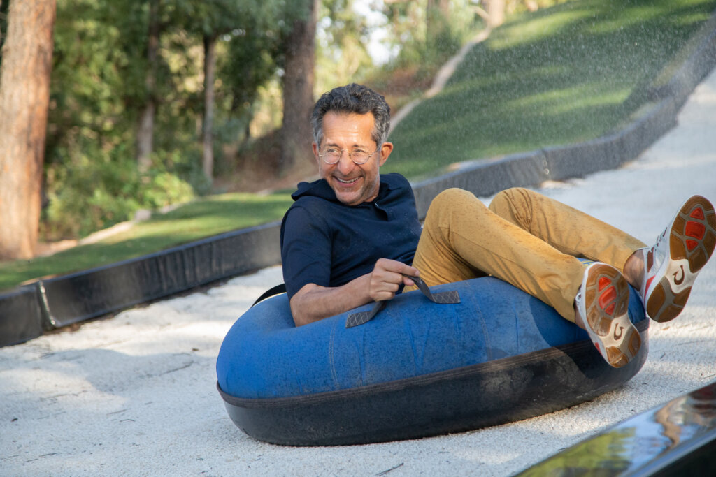 Our Snowtube Hill is perfect for everyone of every shape and size! The components really are very simple; a big hill, a turf field, an innertube, some soap and water. We trust you can do the math and see the fun there! We particularly love the Snowtube Hill because of its very high throughput; any number of people can enjoy the Snowtube Hill any number of times! It’s a really great way to cool off, speed up, or just hang out!