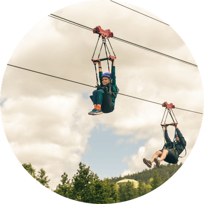 Our High Five zipline features five tandem, high-speed lines, allowing you to race and fly alongside a friend through the breathtaking Rocky Mountain landscape. This adventure sends you soaring for more than a mile over deep canyons, through towering pines, and across stunning mountain scenery.